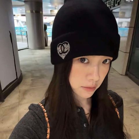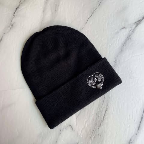 Chanel 25c黑色愛心水鑽毛帽🖤