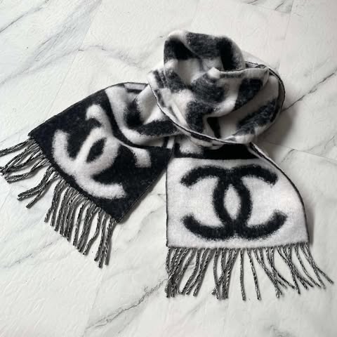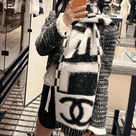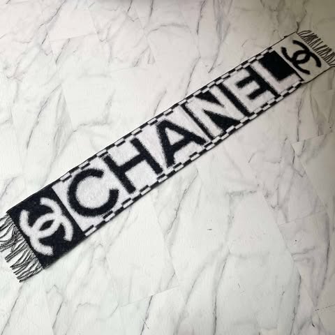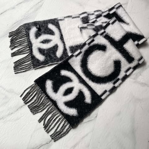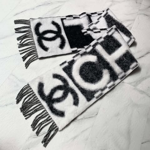 Chanel 25k 新款黑白字母流蘇圍巾