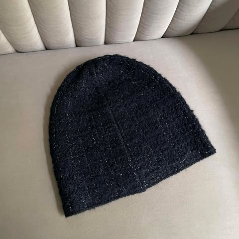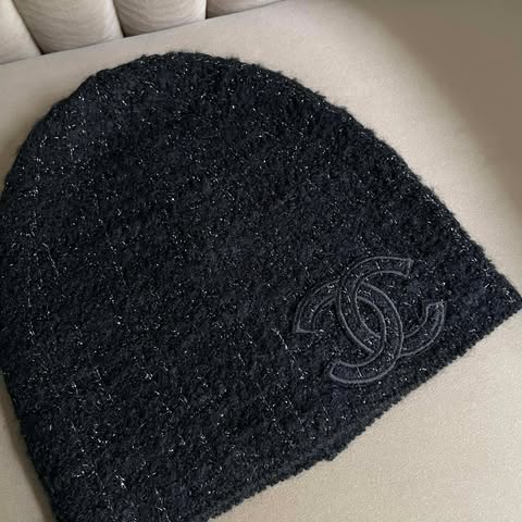 Chanel 26c 黑色刺繡銀線針織毛帽