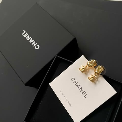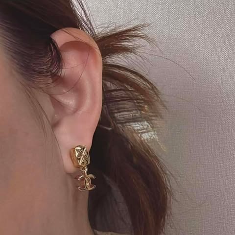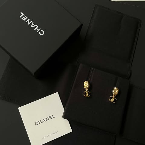 Chanel 26p 小c菱格垂吊耳針 全新全配台灣購證 小漂亮一枚 很有coco crush氛圍 高級感真的很划算😍