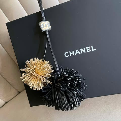 Chanel 26x 聖誕系列 黑金全皮花花吊飾
