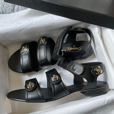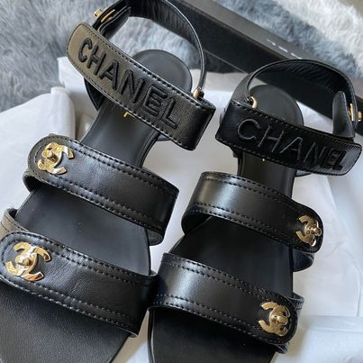 Chanel 37半 黑金轉釦涼鞋 版型偏小 非常輕 全新全配袋盒台灣購證 上腳很美❤️❤️