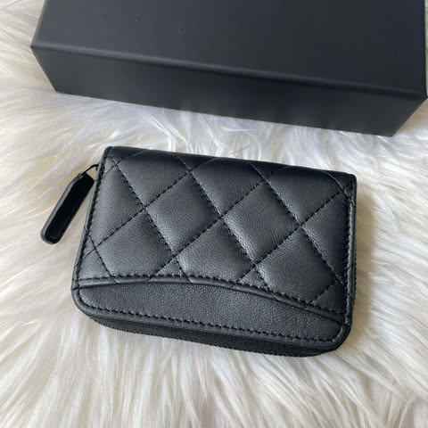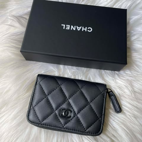 Chanel so black 拉鍊零錢卡包 全新全配台灣購證 這個實品還有帶珠光感超級有質感