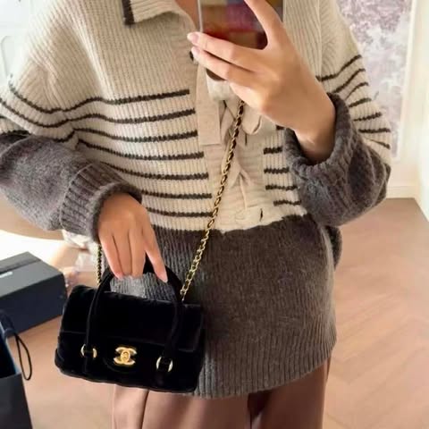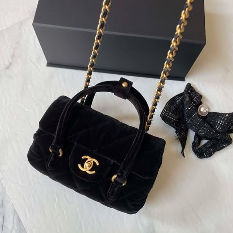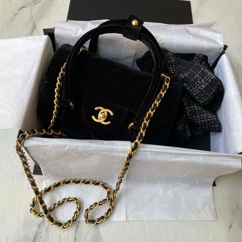 累積消費500w以上+買成衣才拿得到⚠️ Chanel Vic 年度禮 黑金絲絨圓筒包 全新全配聖誕包裝🎄 尺寸16.5*11*9cm 算是超好裝的mini小包~ 真的超級可愛 (pro max不能入 但容量蠻大的) 可鹽可甜的一款🖤🖤