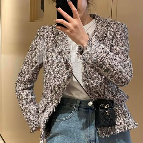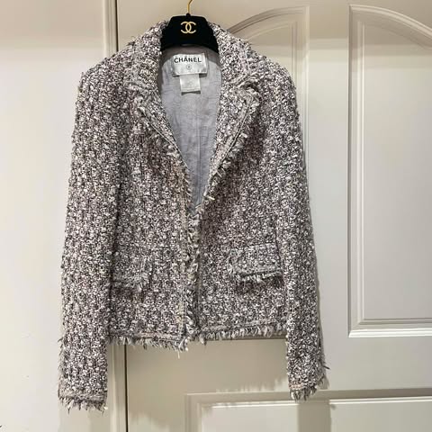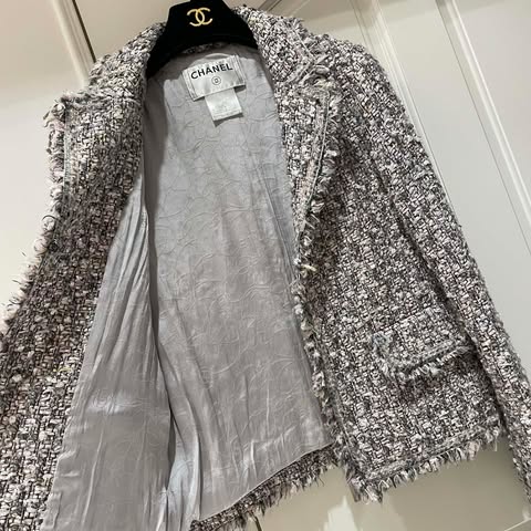 Chanel vintage灰粉毛呢亮片西外 36碼 肩40長50 胸40