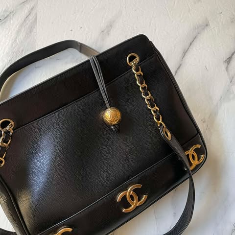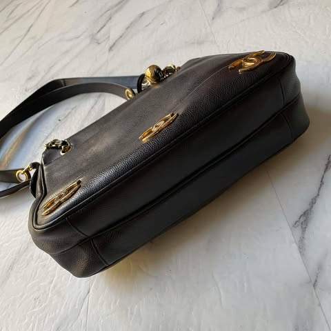 自用划算囉 Chanel vintage黑金魚子醬荔枝金球奶粉包 配件保卡小書/雷標在數字糊了 內附一個包中包 內裡無痕無沾黏 總共有6個大logo 可以肩背流浪包背法 身材允許可以斜背☑️