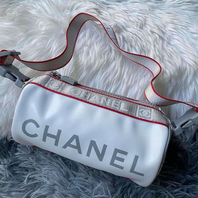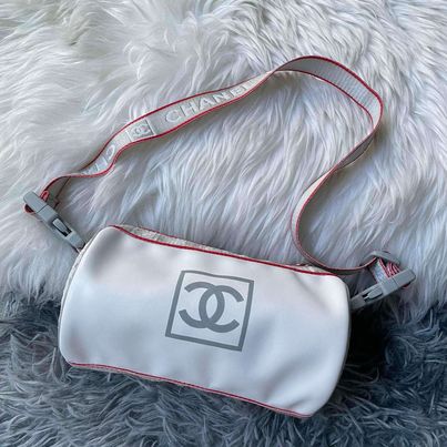 Chanel vintage sport系列方標字母圓桶包 10開無卡雷標完整 Jennie同款 只能單肩或手提喔 尺寸19/10/10 內裡輕微痕跡已拍出不影響使用
