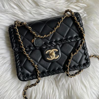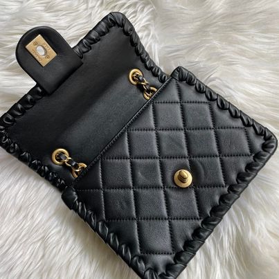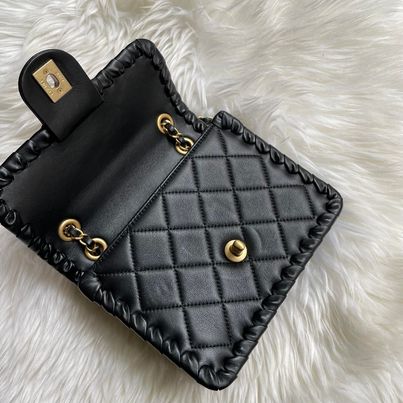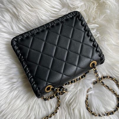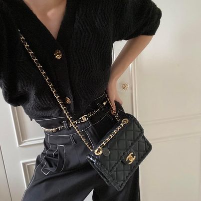 Chanel22c春夏 黑金編織豆腐包 芯片款有袋 尺寸19/15/6 12pro可以斜放