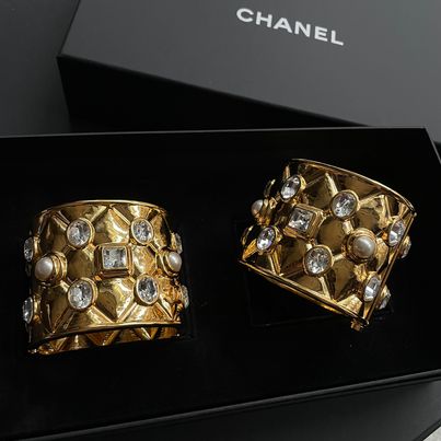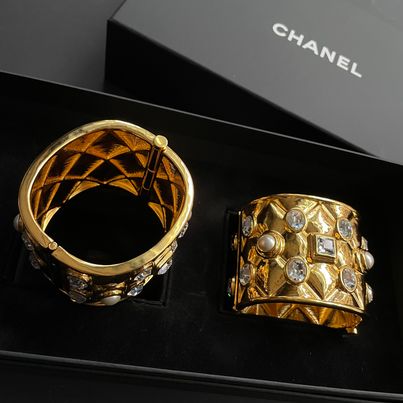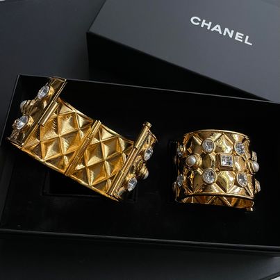 Chanl 21a VIC 生日禮 金色水鑽珍珠手鐲一對 配件有盒 非常霸氣有份量啊❤️‍🔥❤️‍🔥❤️‍🔥