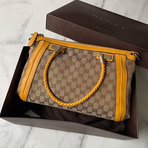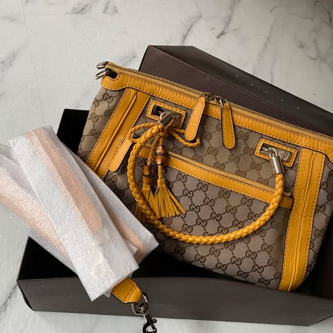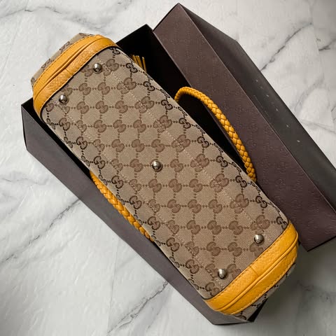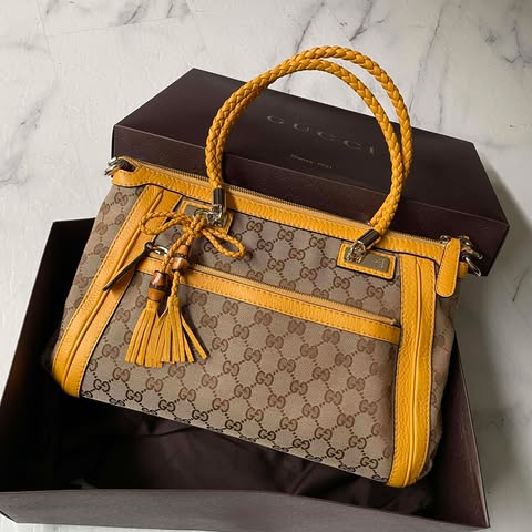 Gucci 琥珀黃老花竹節流蘇包 存放未使用品 全配件 台灣購證發票都還保留 當年購入52800 萬元內出