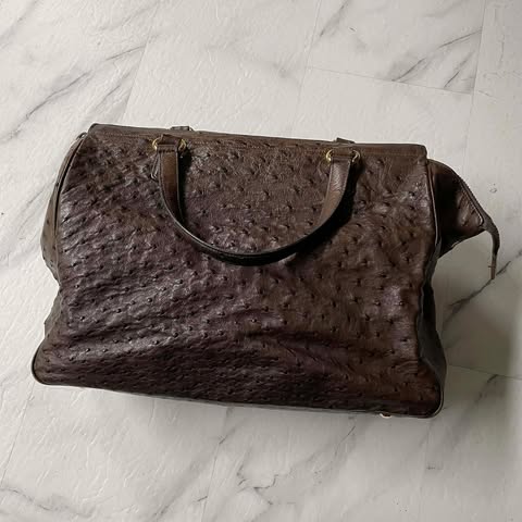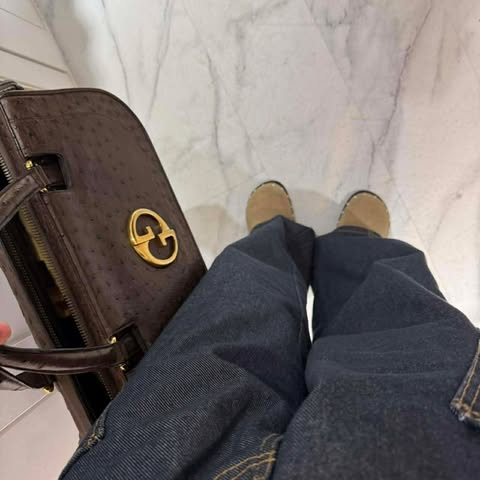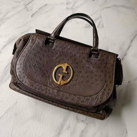 Gucci 鴕鳥皮拉鍊手提保齡球包 配件塵袋紙卡 老錢風代表 當年原價買20幾萬😂現在零頭不到 尺寸38*29*15cm 邊角有磨損 但價格彌補一切啦