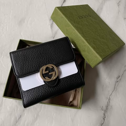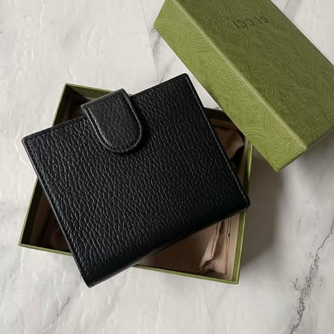 Gucci 黑金大logo雙面短夾 未使用品 全配件2024購證 內裡鈔票有雙夾層可以分類~