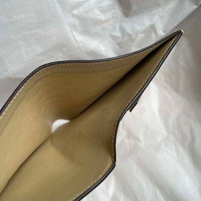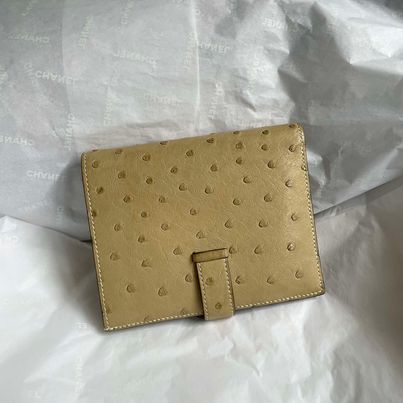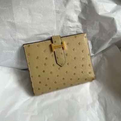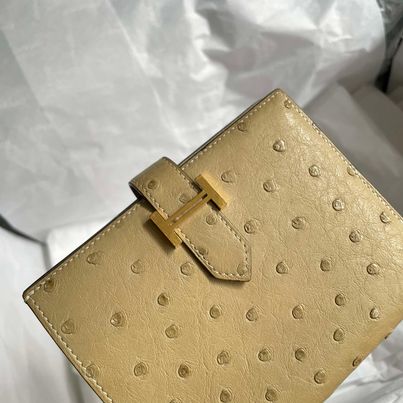 Hermès 羊毛白鴕鳥皮金釦bearn短夾