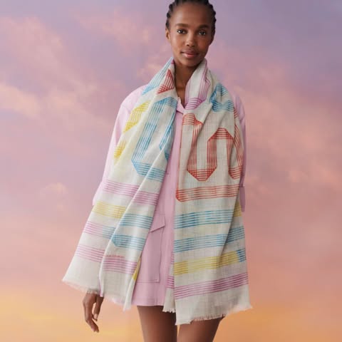 原價37300 Hermes 彩色字母線條披肩 尺寸180*90cm 全新全配 100%克什米爾