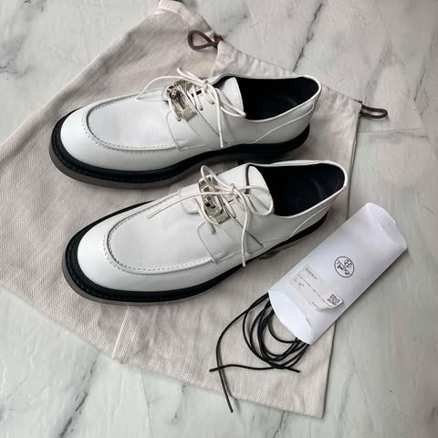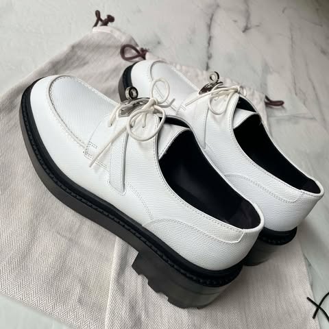 台灣櫃上購入58000 Hermes 白銀Kelly first德比鞋 未使用品 配件塵袋黑色備用鞋帶 38碼要瘦腳板 長度是正碼