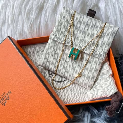 Hermes 綠金 pop h項鍊 絕版大號尺寸 未使用品配件盒子