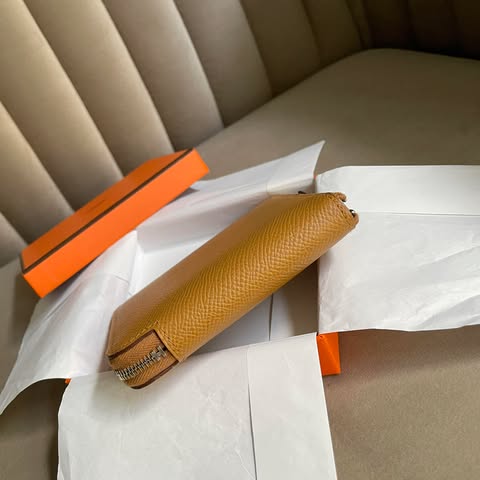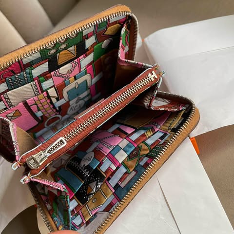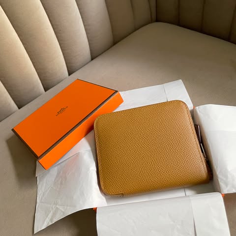Hermes 芝麻色絲巾短夾 閒置W刻配件有盒子