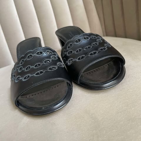 台灣購入26600 Hermes 黑色蕾絲豬鼻子跟鞋 37碼未使用 配件盒子