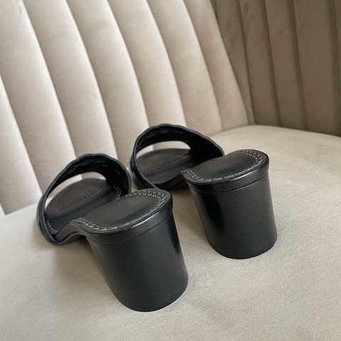 Hermes 黑色蕾絲豬鼻子跟鞋