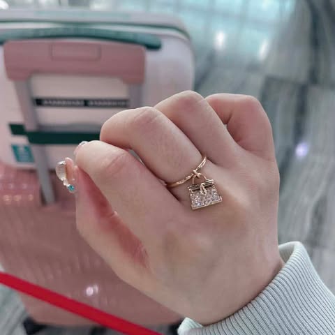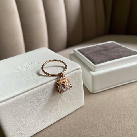 Hermes 18k金色kelly包包鑽戒