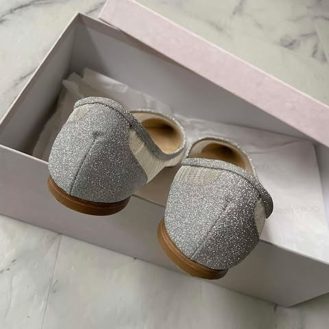 台灣購入31800 Jimmy choo 網紗亮粉平底鞋 夢中情鞋這雙實物好美 35碼配件塵袋盒子 二手少穿 我個人覺得36可以穿(自行斟酌哈)