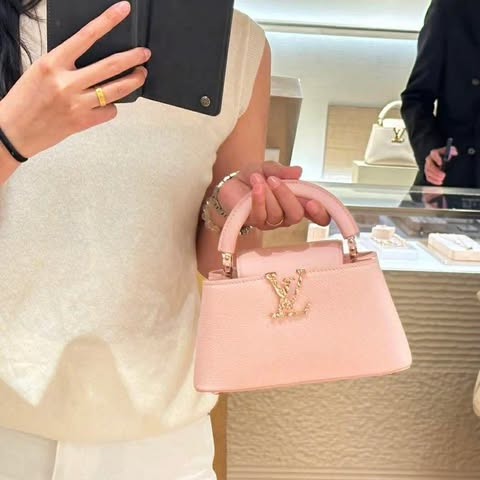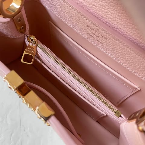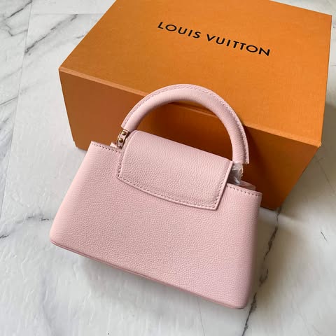 Lv櫻花粉capucines east west mini 短暫用過1-2次 99新🆕沒毛病 Logo也太太太美了 波光粼粼 配件有盒子塵袋 新加坡專櫃購入 他們家的高端款👏🏻👏🏻二級市場買最划算 尺寸22*12*8cm 素面款都還得23萬原價