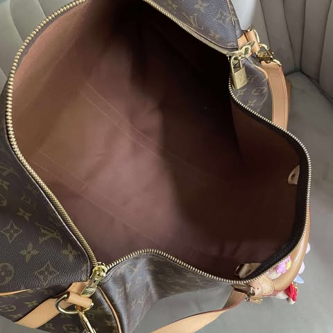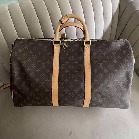 Lv 中古老花keepall50 配件塵袋鎖具 成色保存挺好 行李牌背面有英文刻字 不影響美觀 在機場應該蠻常看到有人背的 可以作為旅行出差包/運動包也ok 櫃上89000 甜甜半價以下出