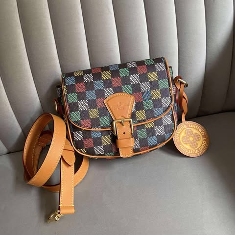 Lv 彩色棋盤格郵差包 全配件台灣購證 2025新款!!!! 還有小吊牌很可愛啊