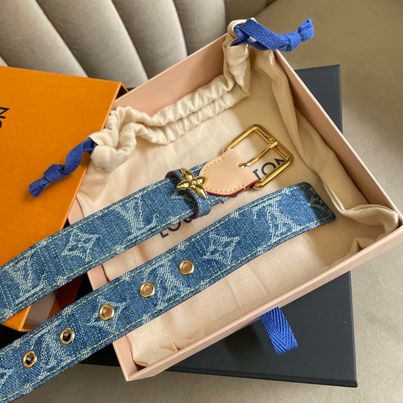 Lv 新款牛仔老花腰帶 專櫃熱門已斷貨 80碼 寬度3cm 孔眼位置74-84cm 配件有塵袋盒子