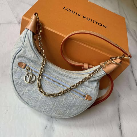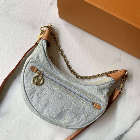 Lv 淺牛仔老花豌豆loop 配件塵袋 背帶可調節斜背肩背 尺寸23*13*6cm 有使用感 櫃上101000