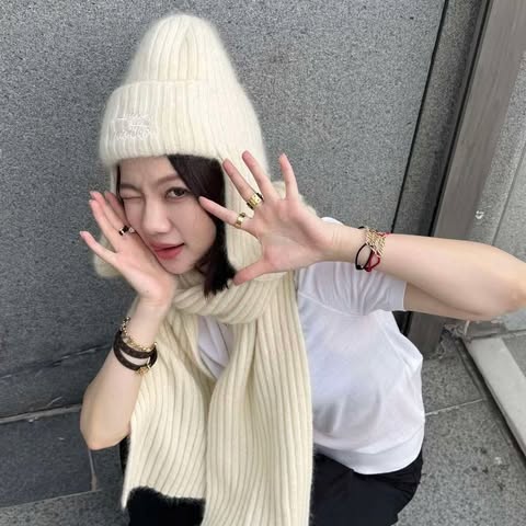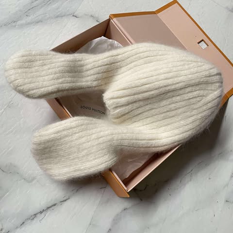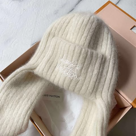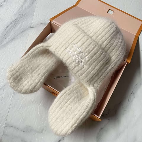 Lv 白色草寫字母兔耳朵雷鋒帽 全新全配 50%馬海毛 軟軟糯糯 性價比好高 全智賢同款