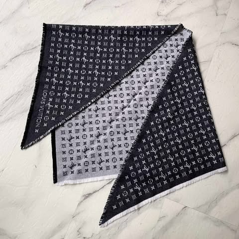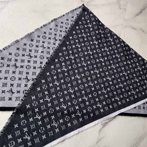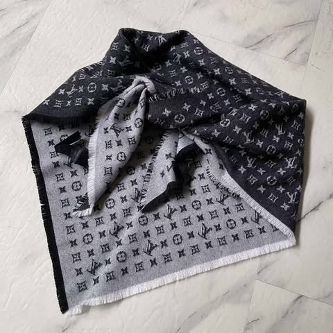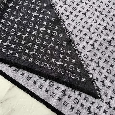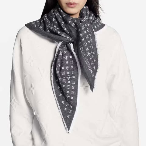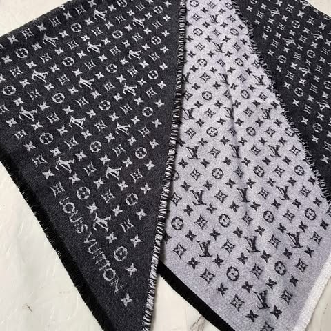 Lv 黑灰老花三角巾 全新全配10月購證 100%羊毛 非常舒服~