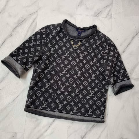 Lv 黑灰老花羊毛上衣 S碼全新吊牌在 台灣購入 闆娘165/50都沒問題 肩41 袖長31 胸46 衣長55 這件好好看呀~~