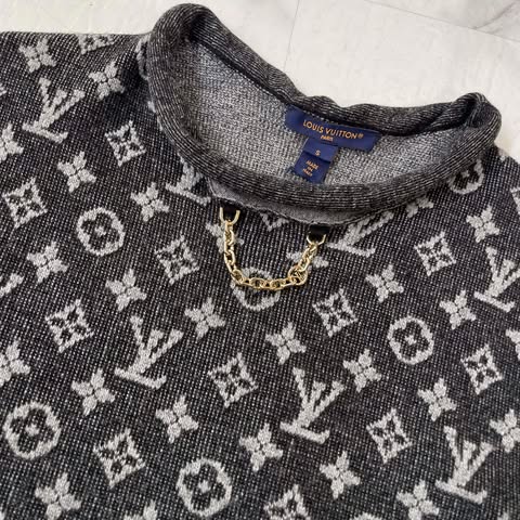 Lv 黑灰老花羊毛上衣