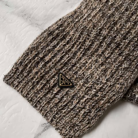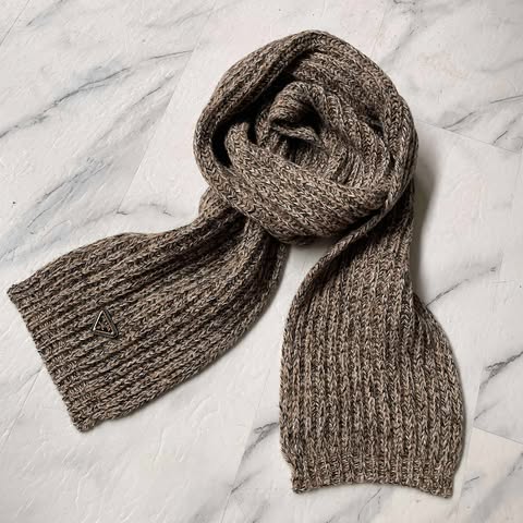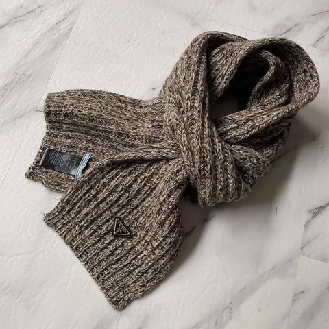 Prada 新款美拉德粗花針織圍巾 全新全配2025.10月購證 70%綿羊毛 30%羊絨 這次出的顏色小編個人超推👍
