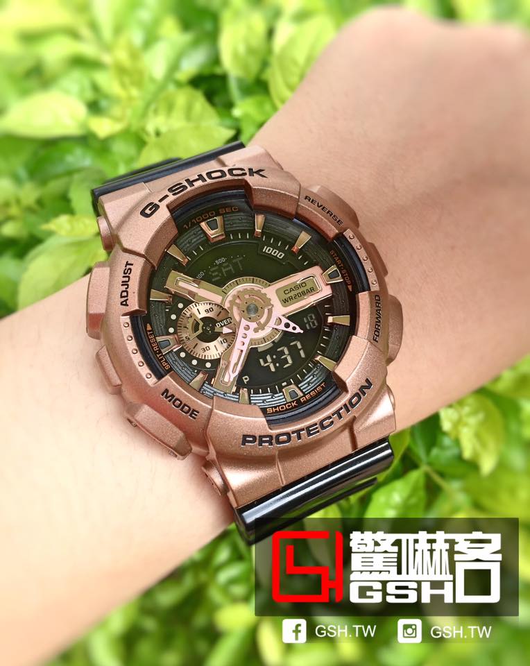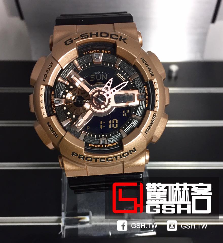 G-SHOCK 指針數位雙顯 - 玫瑰黑金 GA-110GD-9B2