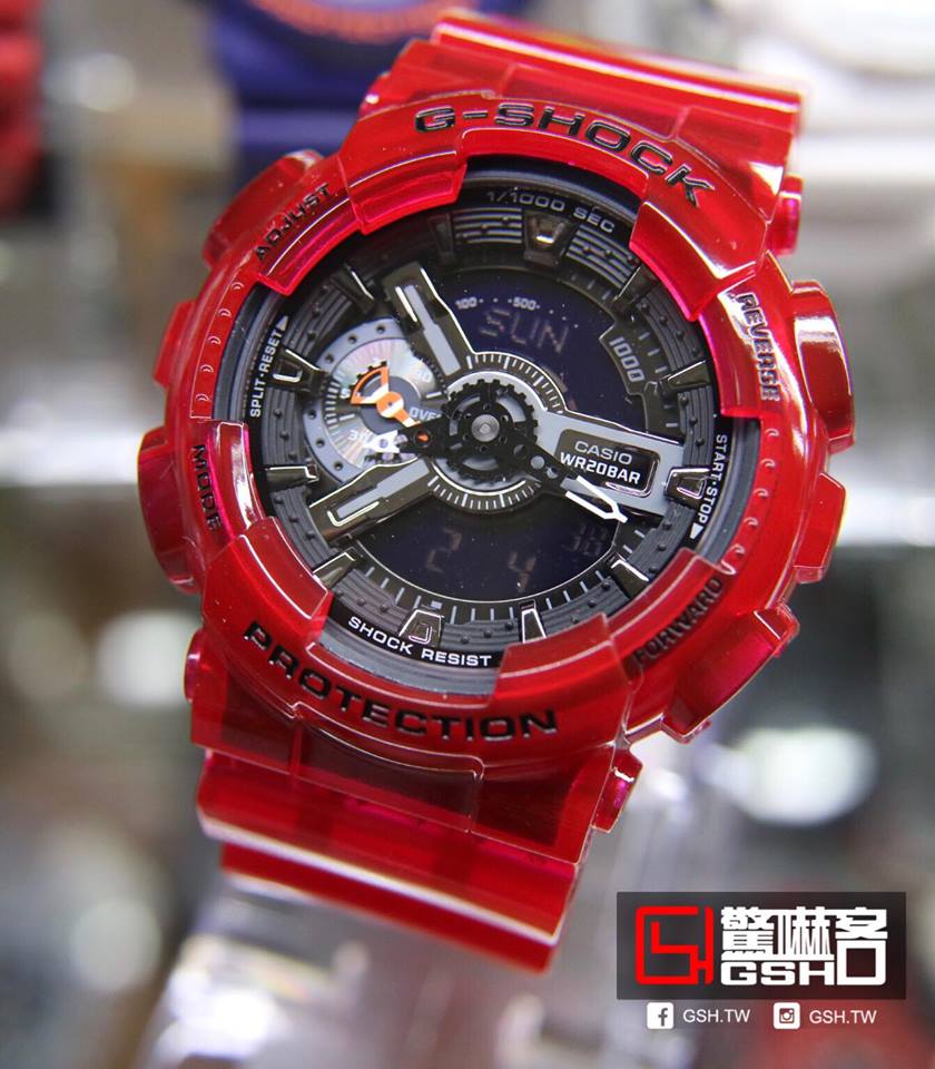G-SHOCK 海洋生態設計透明果凍色系雙顯運動錶 紅色 GA-110CR-4