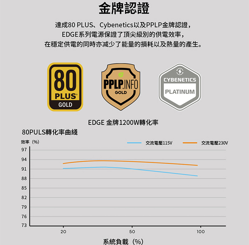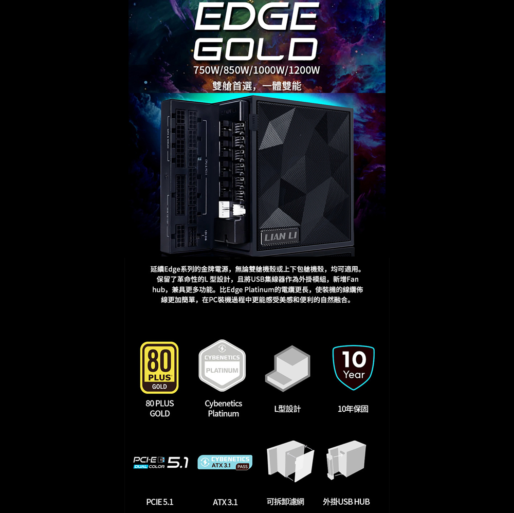 聯力 EDGE 1000W黑/金牌/ATX3.1/PCIE5.1 電源供應器