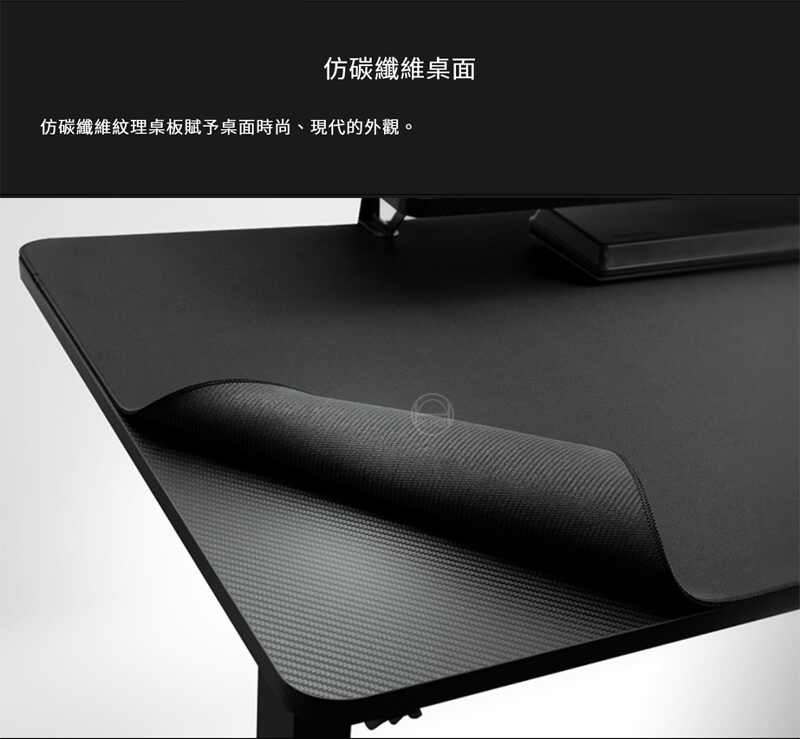 仿碳纖維紋理桌板賦予桌面時尚、現代的外觀。