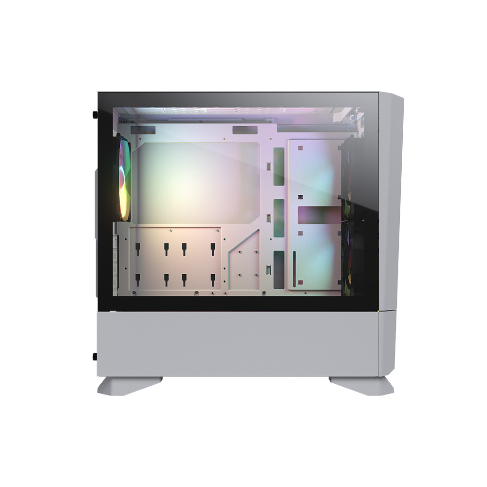 以時尚簡約的線條設計搭配獨特新穎的異型通風孔面板 具有強大的散熱氣流和卓越的硬體擴充性,能為您帶來絕佳的裝機體驗 最高可支援280mm水冷排、長達350mm顯卡、和160mm CPU散熱器