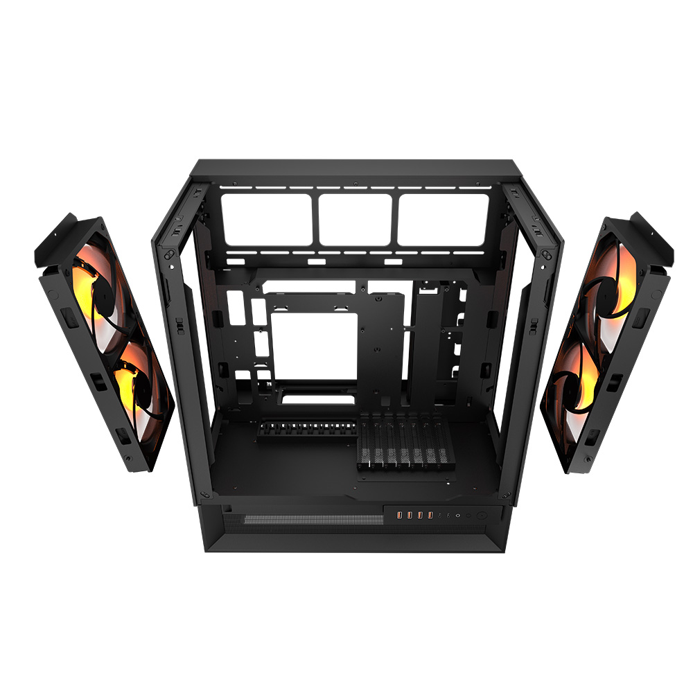 任意一面,精彩依舊完美對稱設計,讓你隨心選擇擺放方向。不論是右側、中央還是左側,OmnyX 的雙面透明鋼化玻璃面板都能展現其獨特魅力,帶來全方位視覺享受。