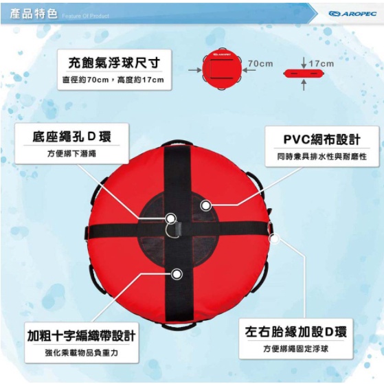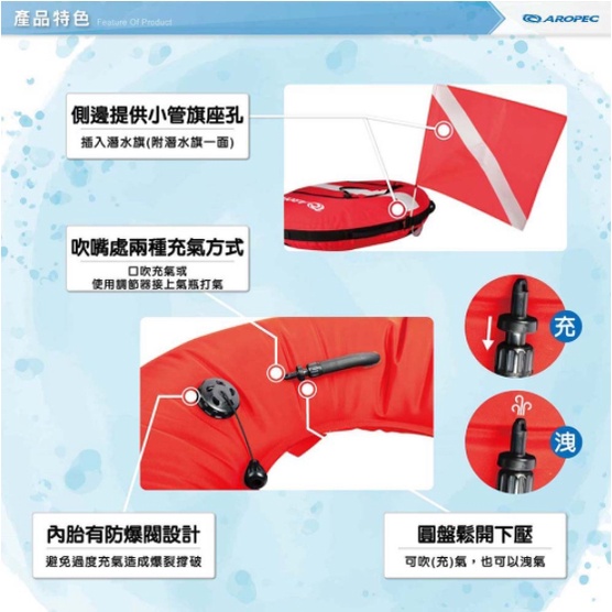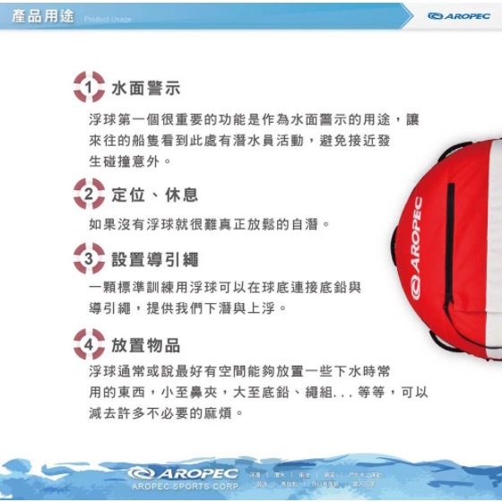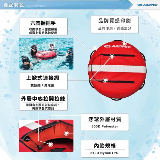 台灣品牌 Aropec 自由潛水浮球 (含內胎/附潛水旗一面)