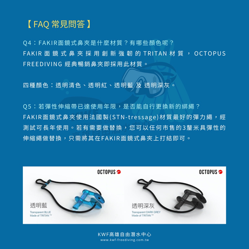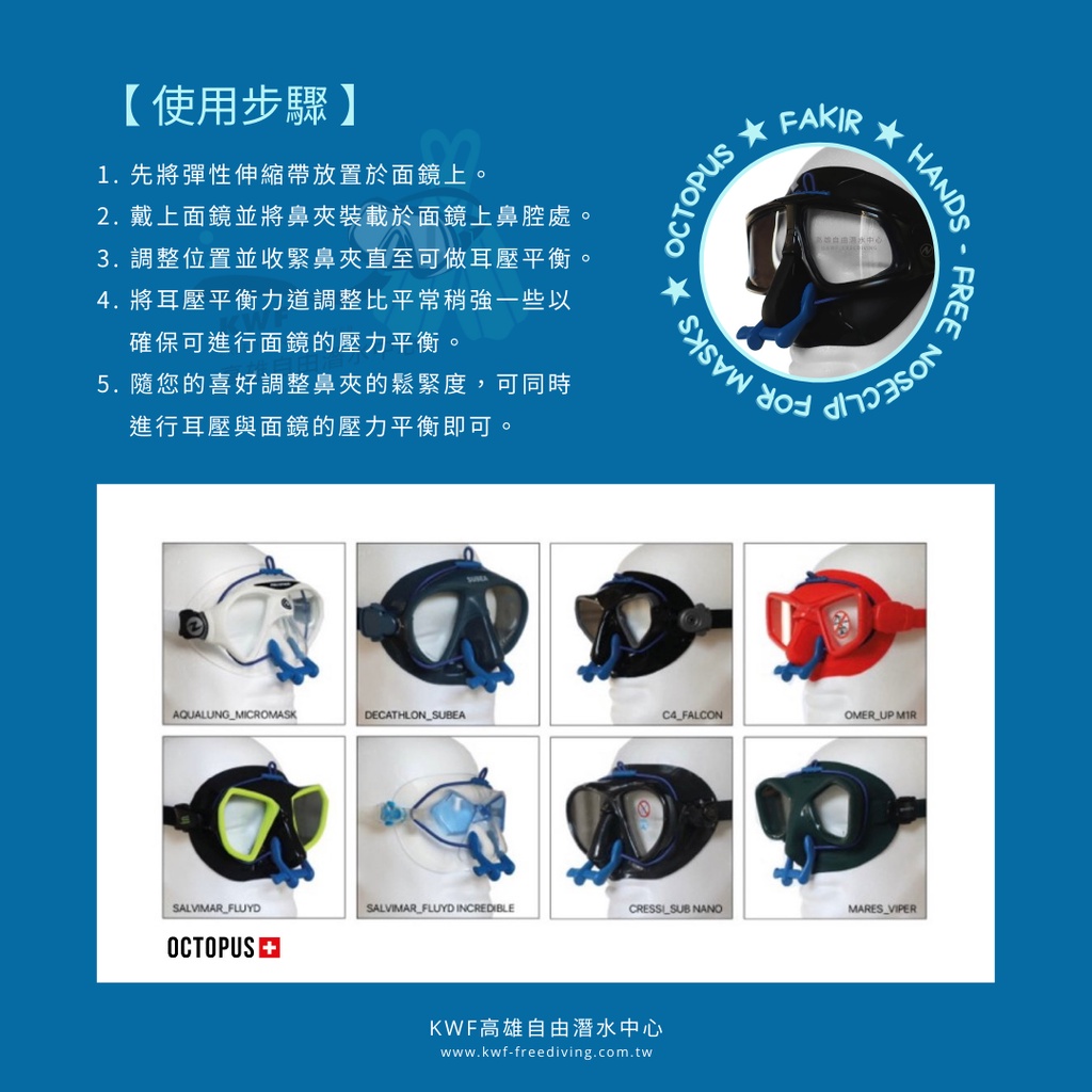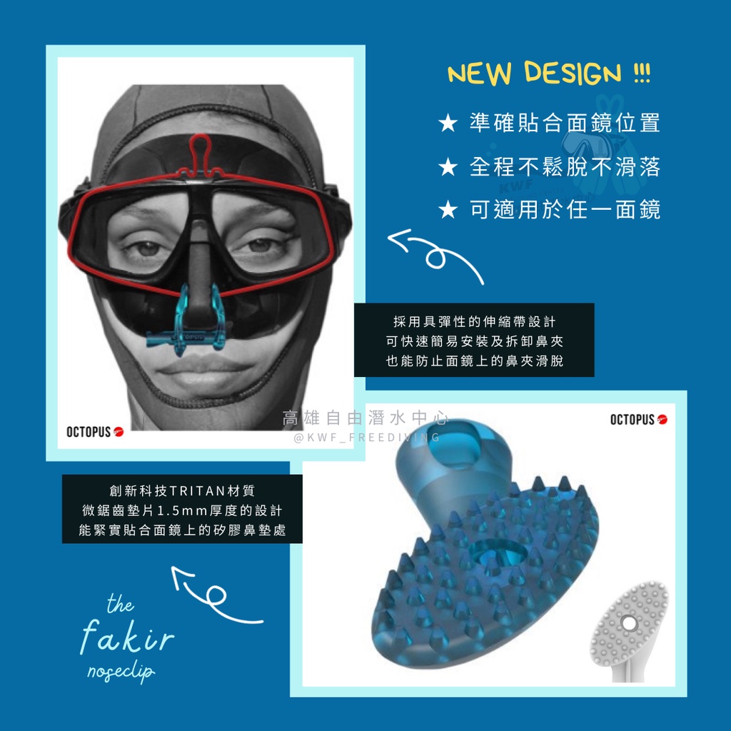 來自高品質的瑞士Octopus Freediving最新研發出第三款鼻夾:The FAKIR面鏡式鼻夾