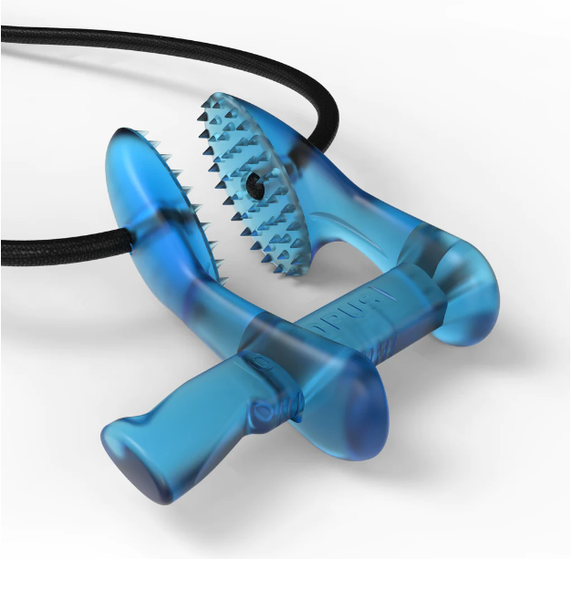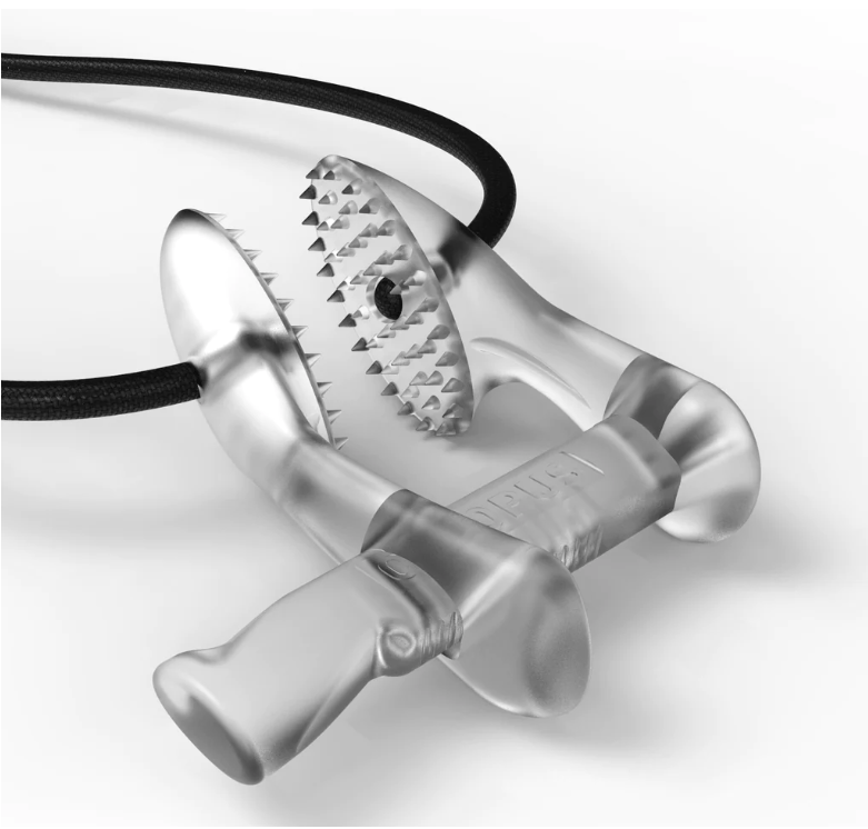 It is to ensure that the noseclip will stay positioned in the optimal zone that we have developed our two innovations: the micro-teeth and an adjustable elastic band.