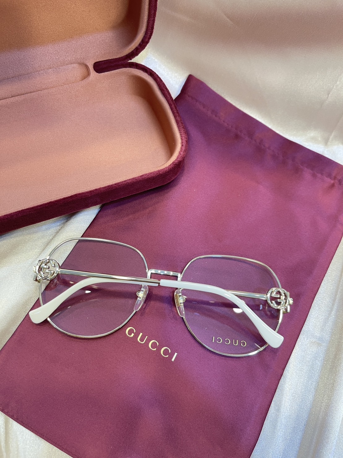 輕質金屬鏡腿上激光雕刻 Gucci 字樣徽標。