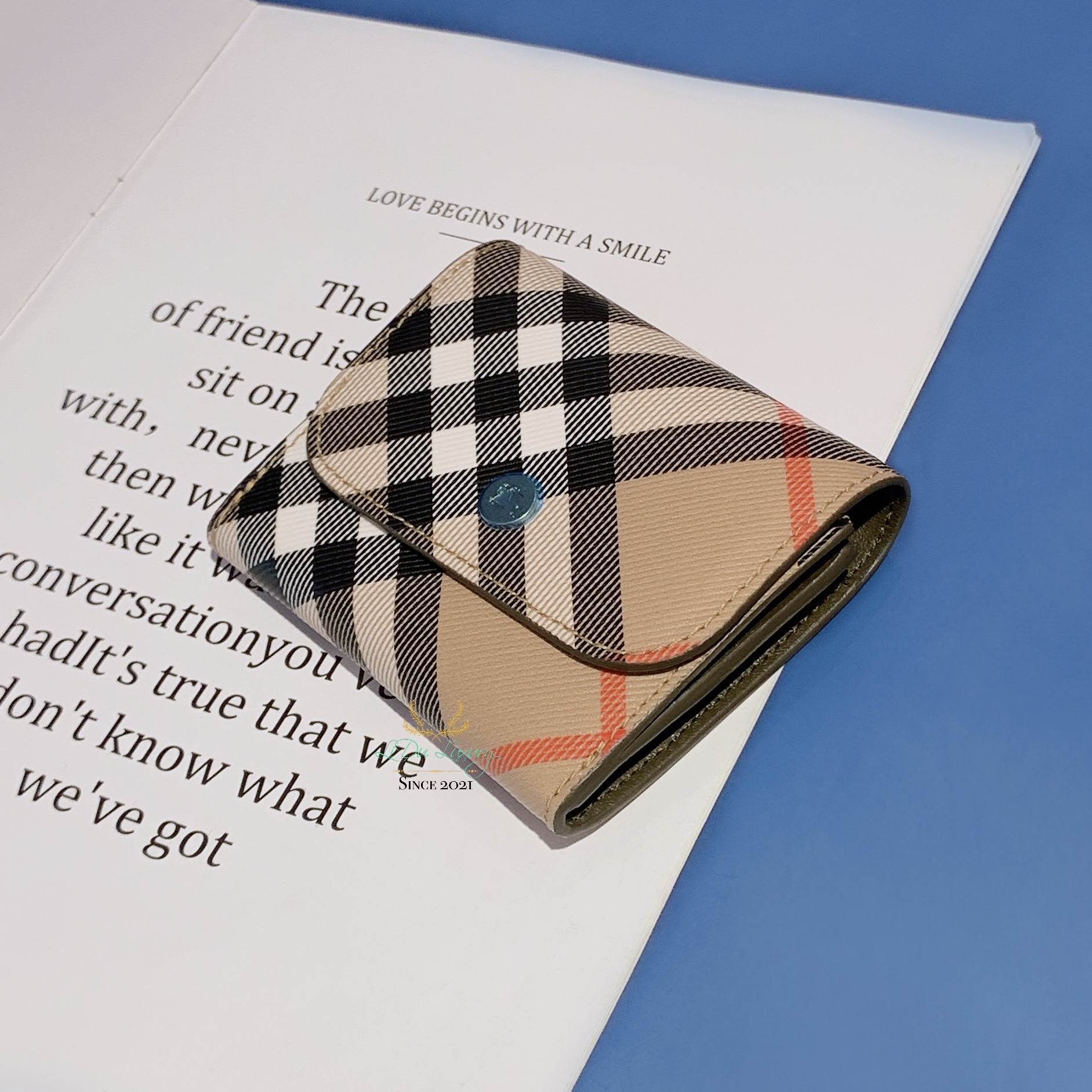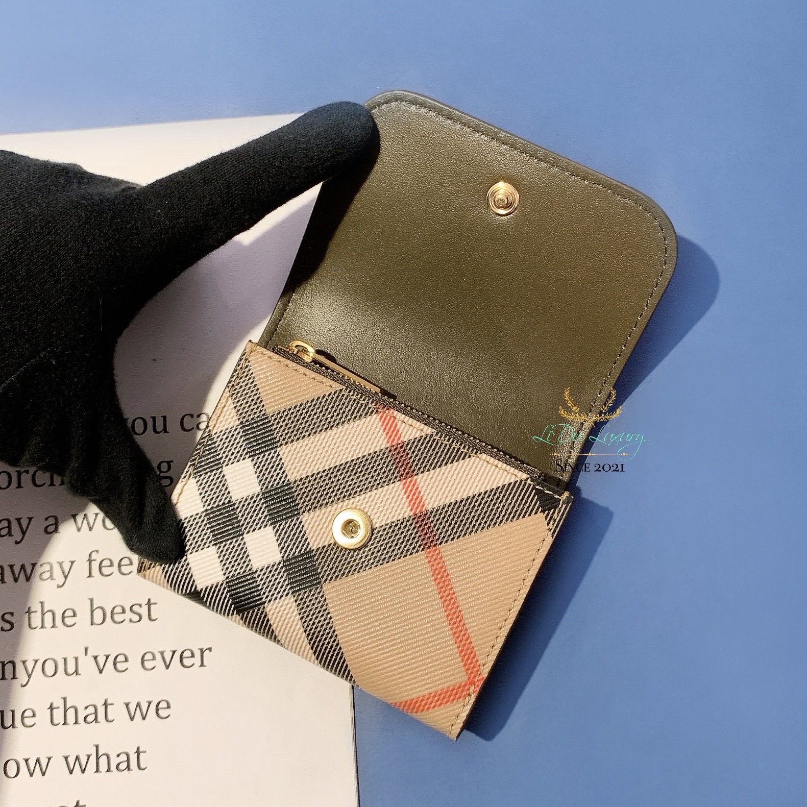 BURBERRY 80927261 沙色格紋拉鍊零錢卡包