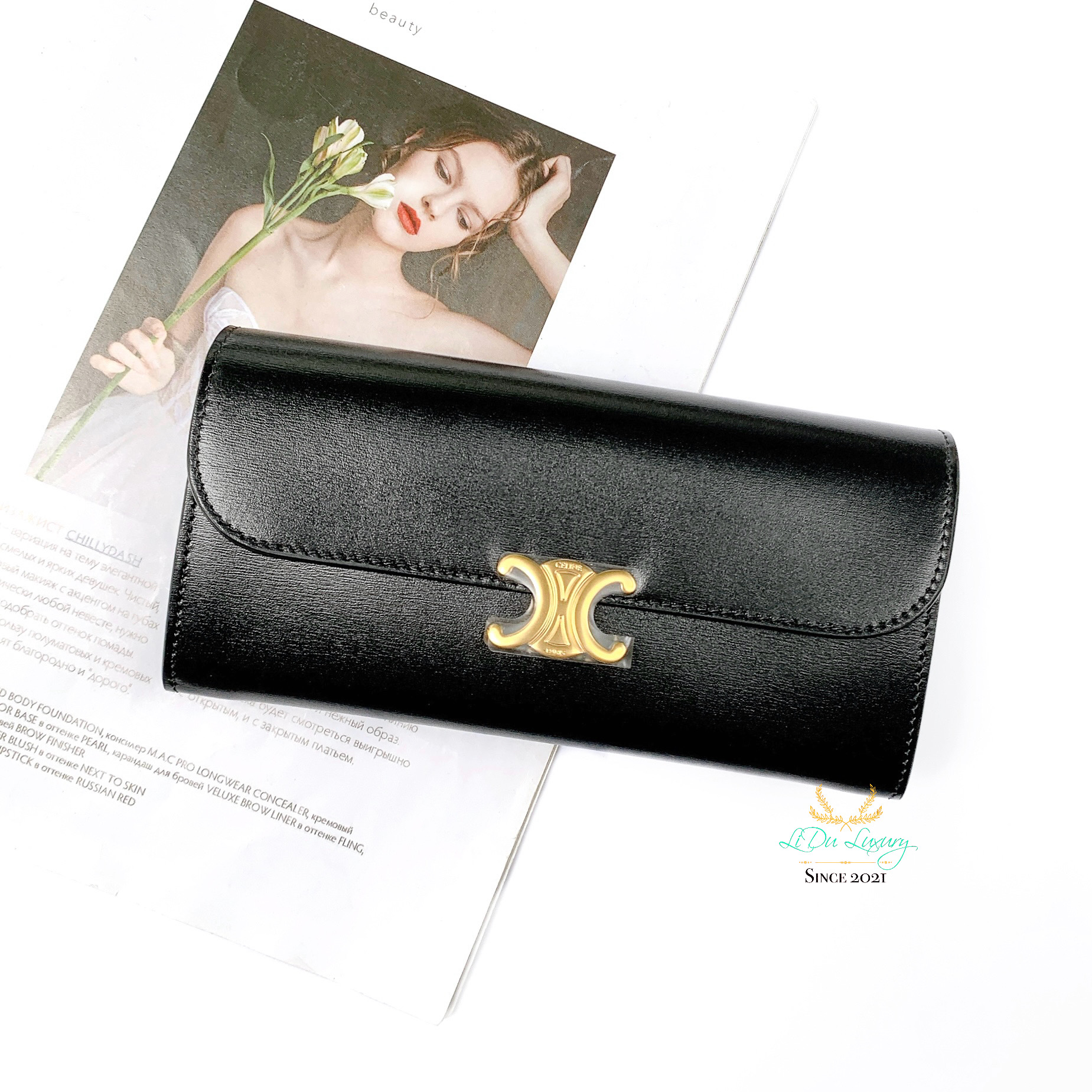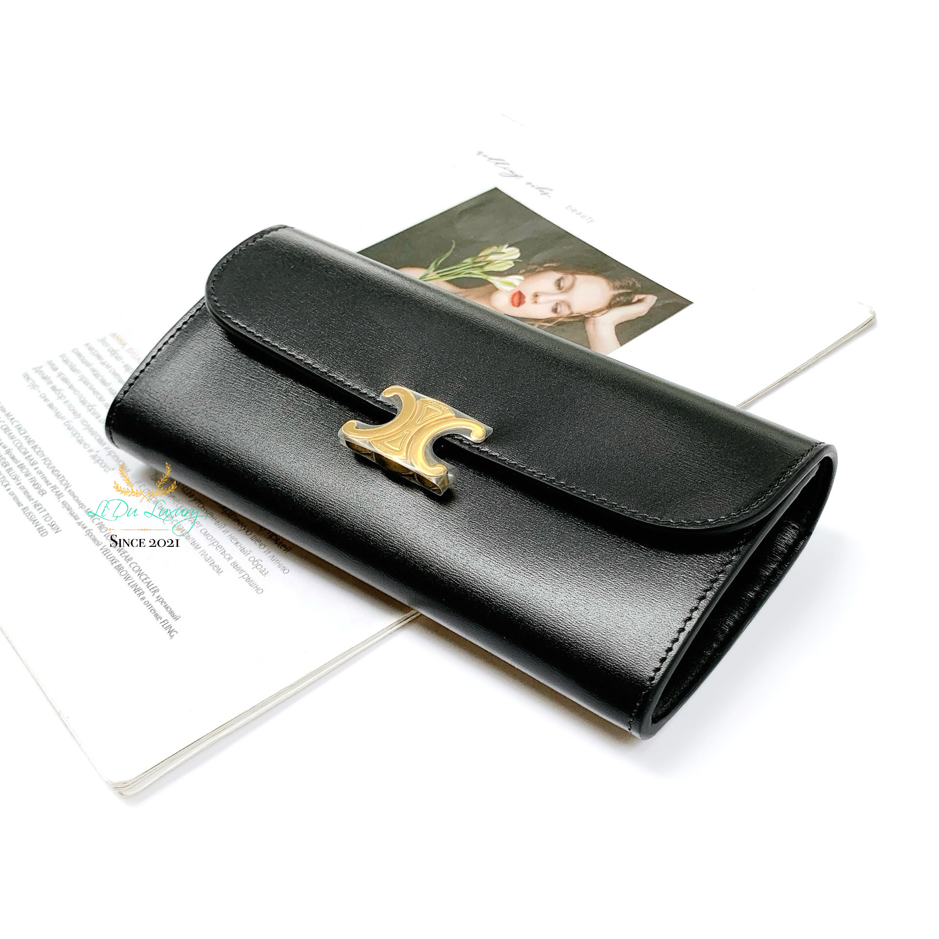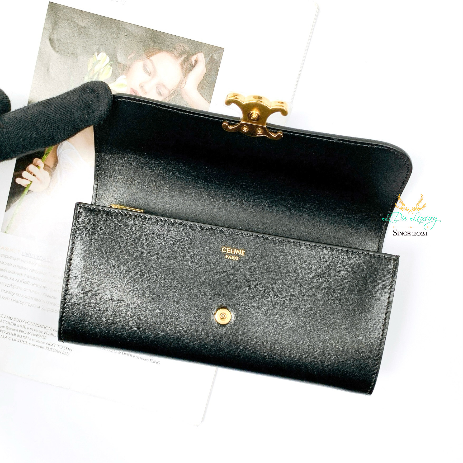 CELINE 10E313DPV 黑色TRIOMPHE 牛皮金釦 大號釦式 凱旋門長夾