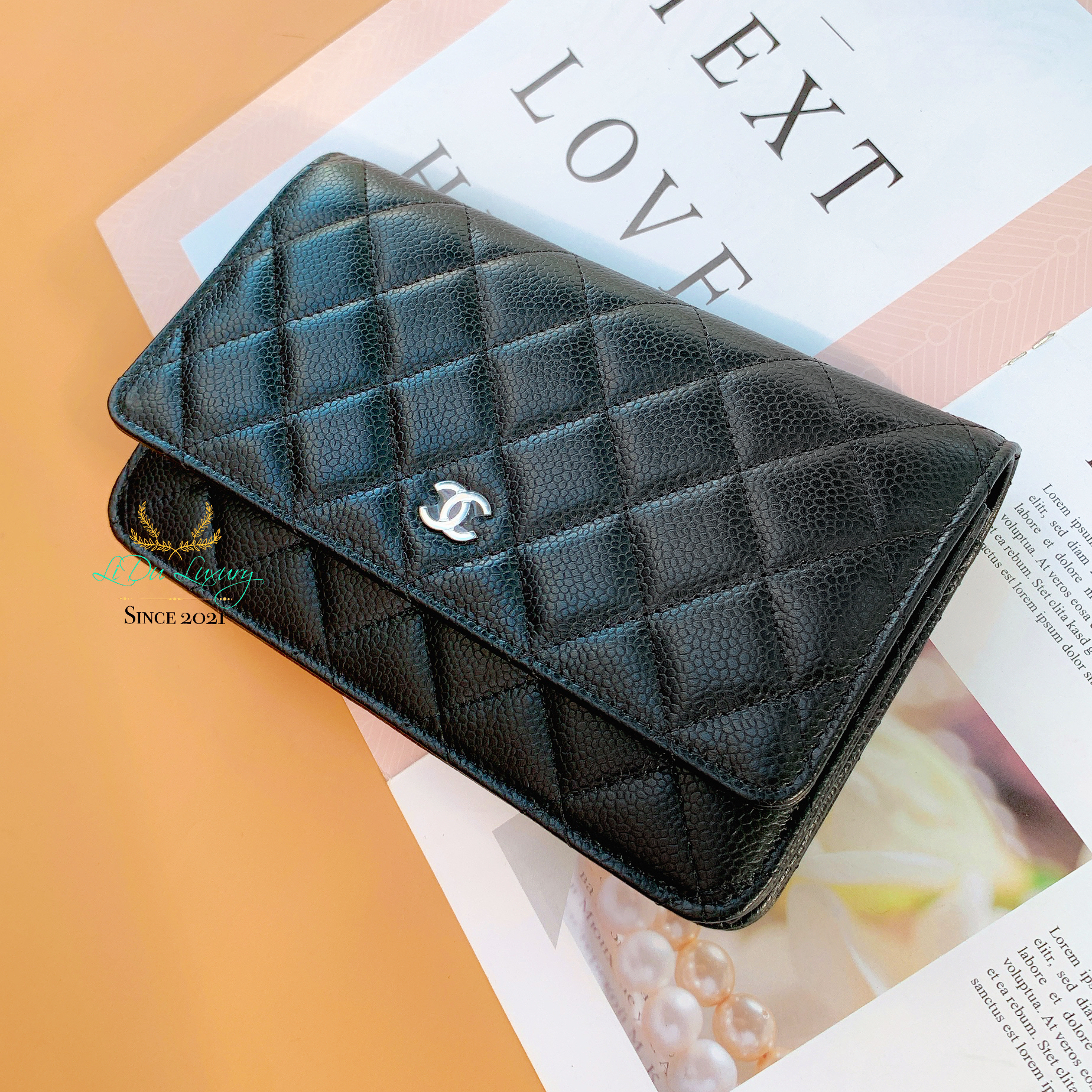 CHANEL 黑色荔枝銀釦 經典款WOC