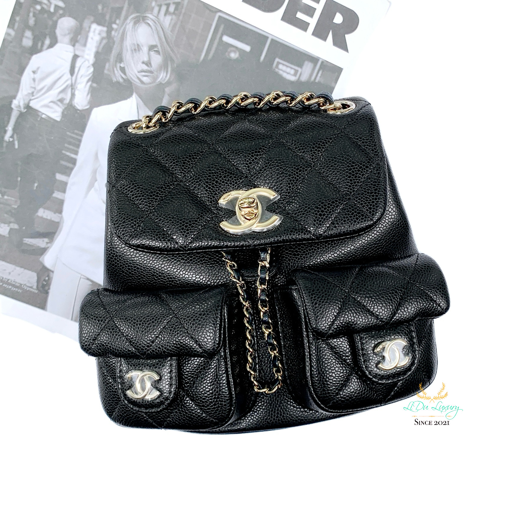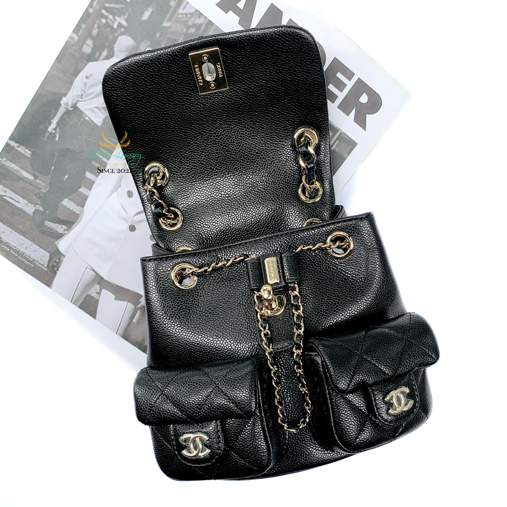CHANEL AS3787 25P Duma 黑色荔枝牛皮金釦 小青蛙後背包