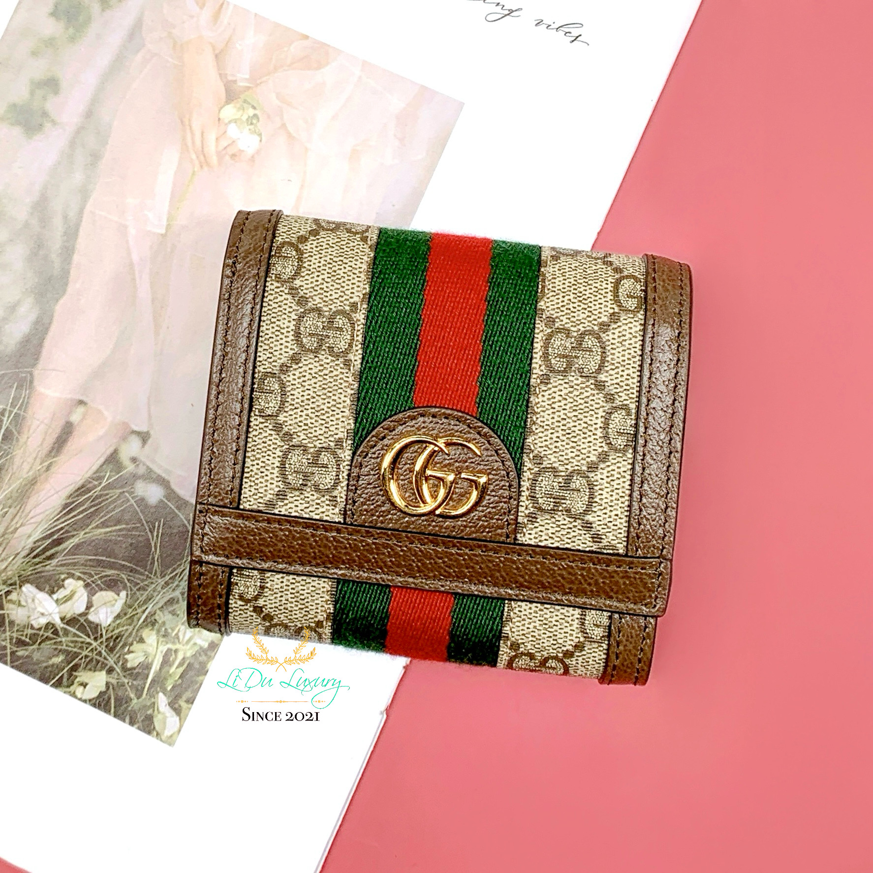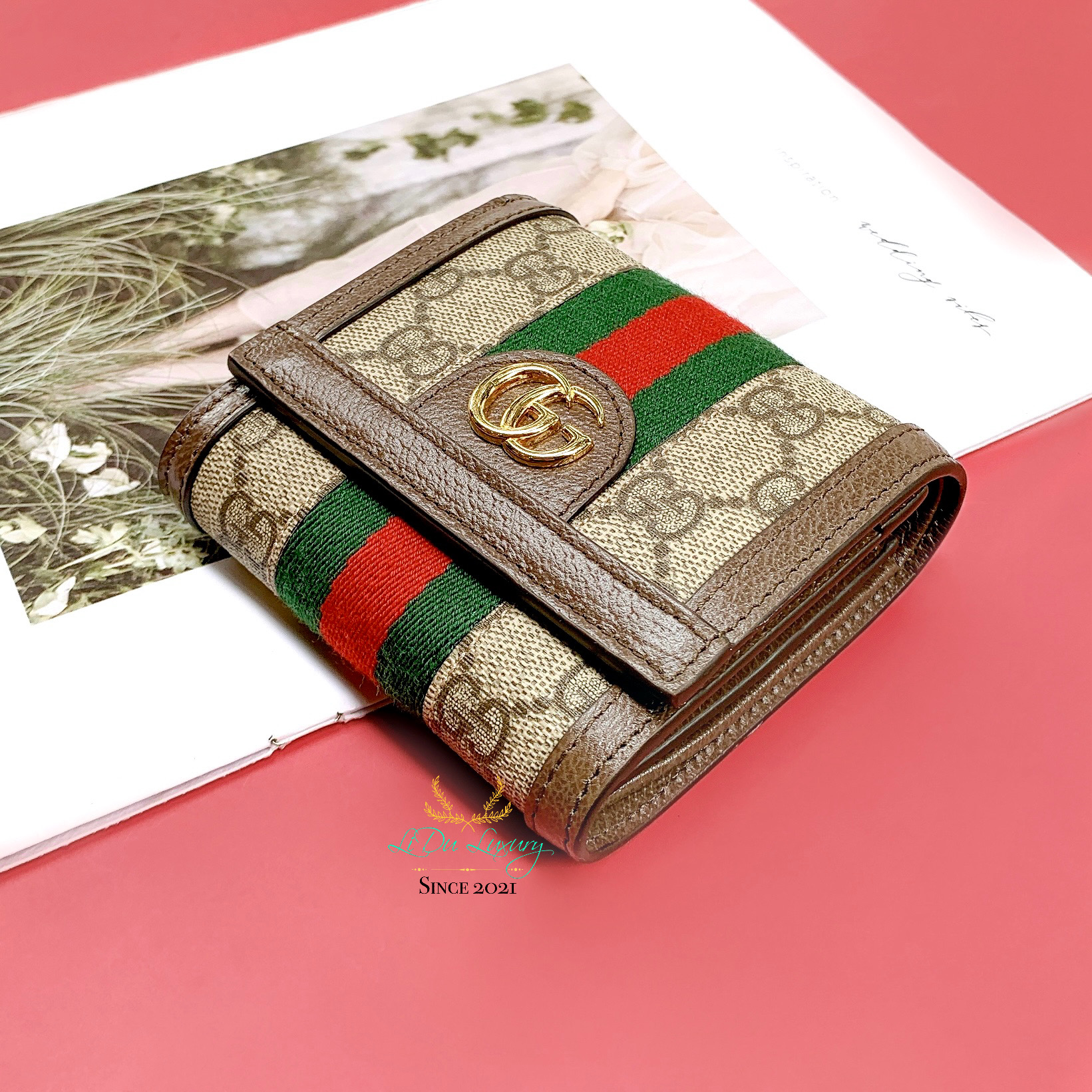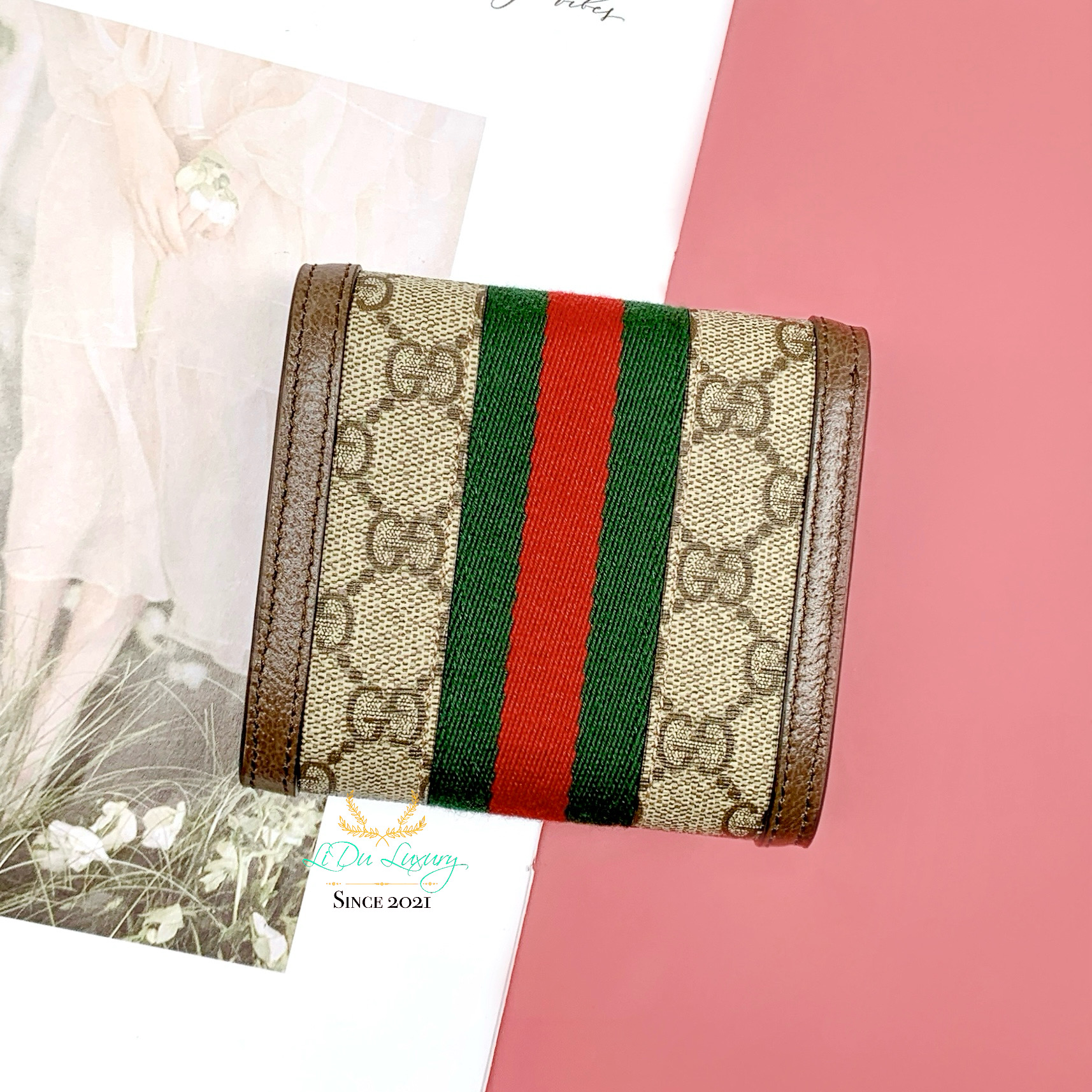 GUCCI 598662 Ophidia GG帆布 綠紅織帶 翻蓋短夾